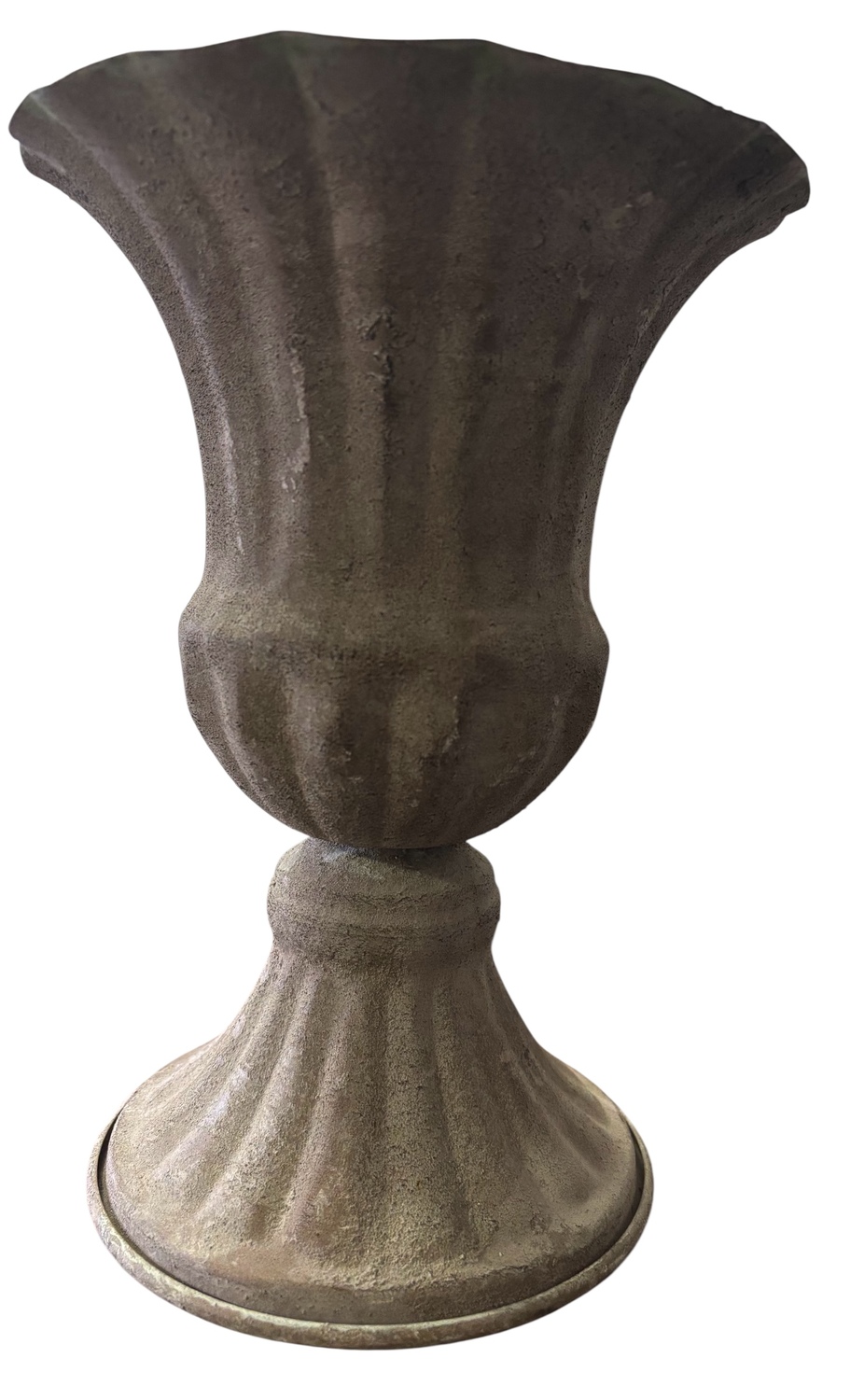 A stunning vintage zinc urn. It’s fabulous on it’s own, filled with Eucalyptus or freshly cut Dahlias from the garden. As with all zinc urns I never quite trust that the water will all remain in the urn so I place a glass inside to contain the water.