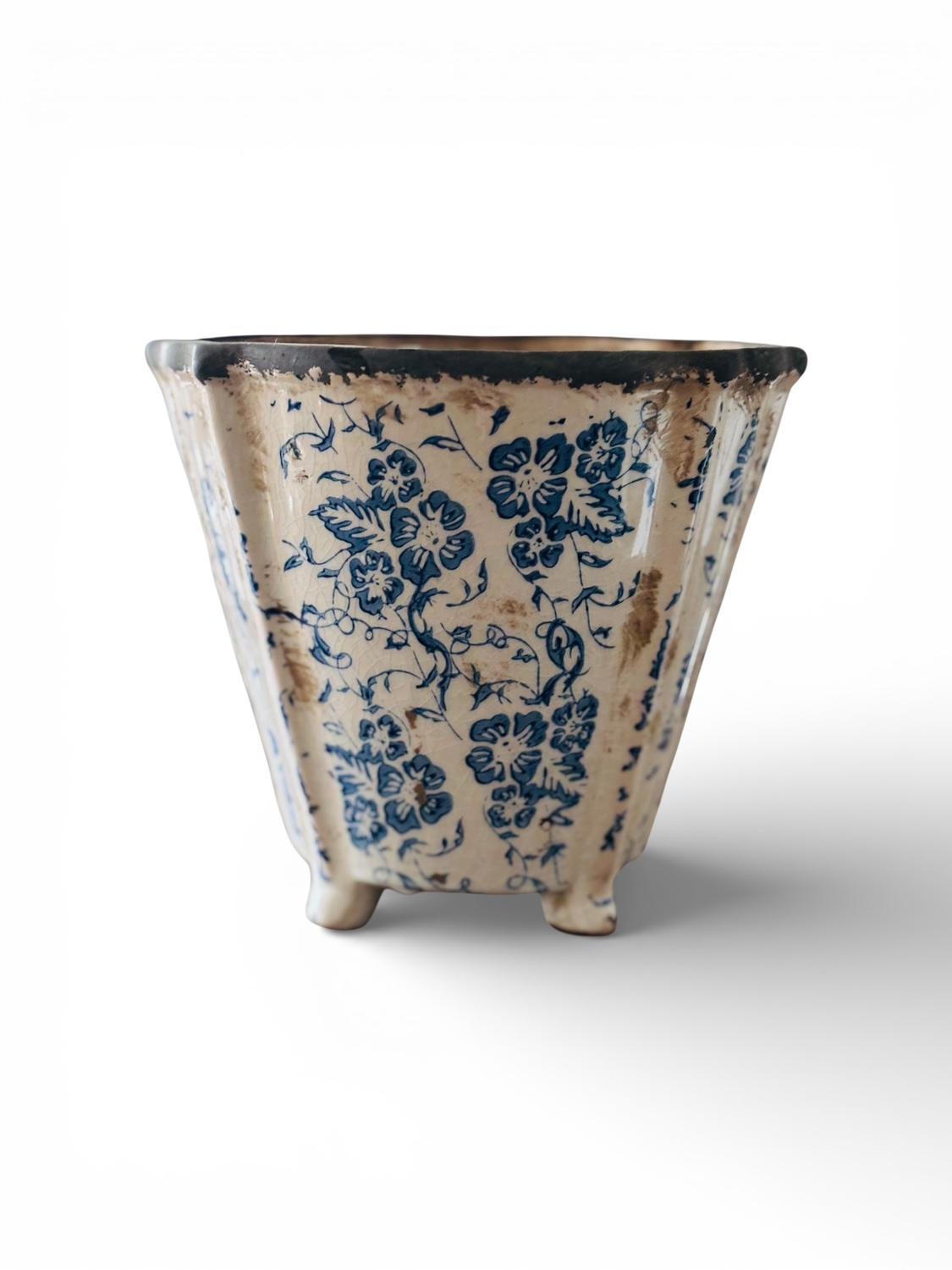 This is just the most dainty, vintage vase you have seen with a beautiful aged patina standing on little feet. I just adore it filled with blue hyacinths in my bathroom.